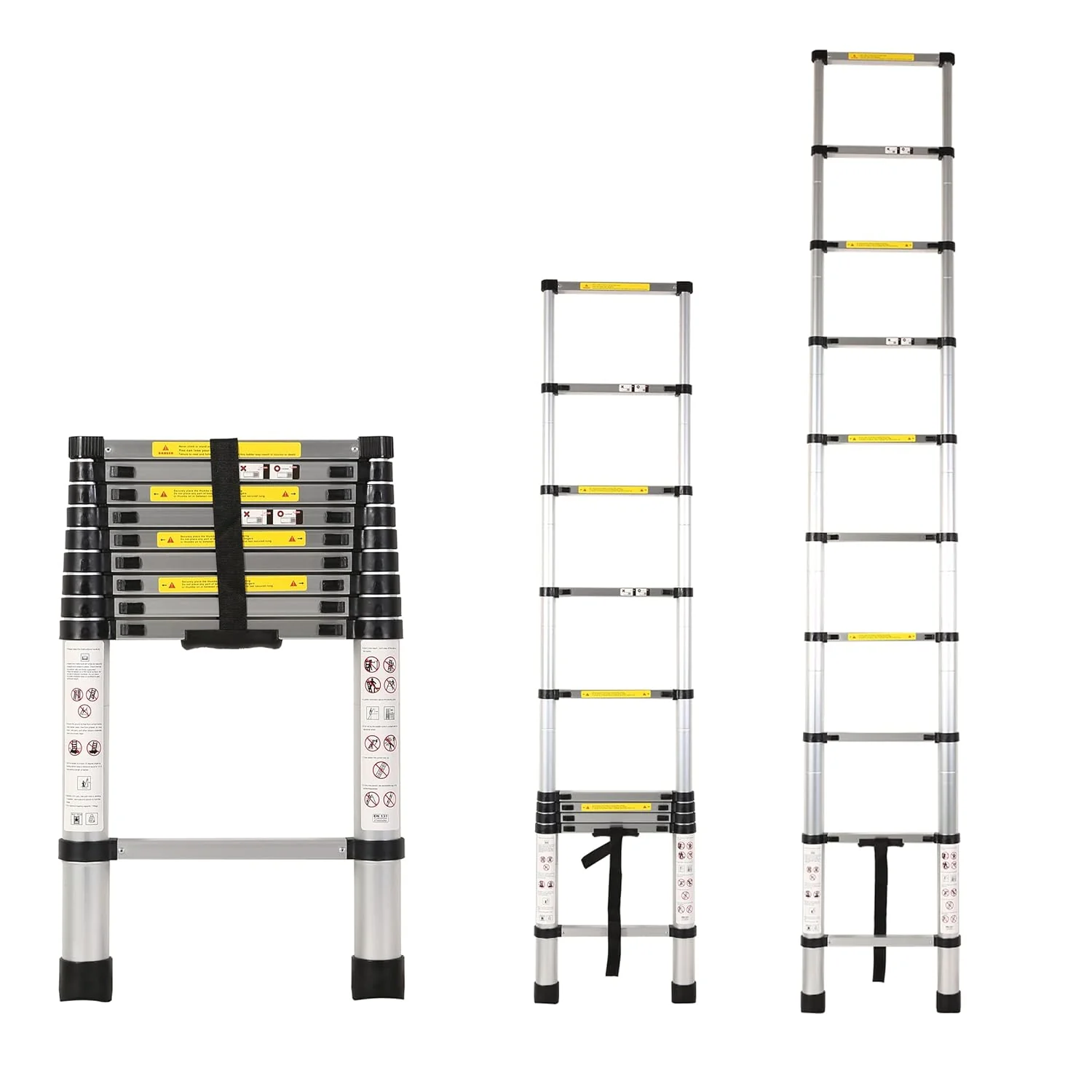 - 10 Steps telescopic ladder with extended length up to 2.9 meters or 9.5 ft and folded size of 75 cm