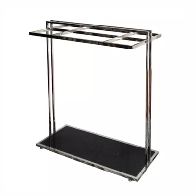 This stylish and functional chrome clothing rack features a modern design with a bottom storage shelf for additional organization. The sleek chrome frame provides a polished and durable structure, while the spacious top bar allows for easy hanging of garments such as shirts, jackets, and dresses. The bottom shelf provides convenient space for shoes, boxes, or other accessories, offering a compact yet efficient storage solution. Ideal for both home and retail use, this clothing rack blends elegance with practicality, perfect for showcasing your wardrobe or organizing items in any space.
